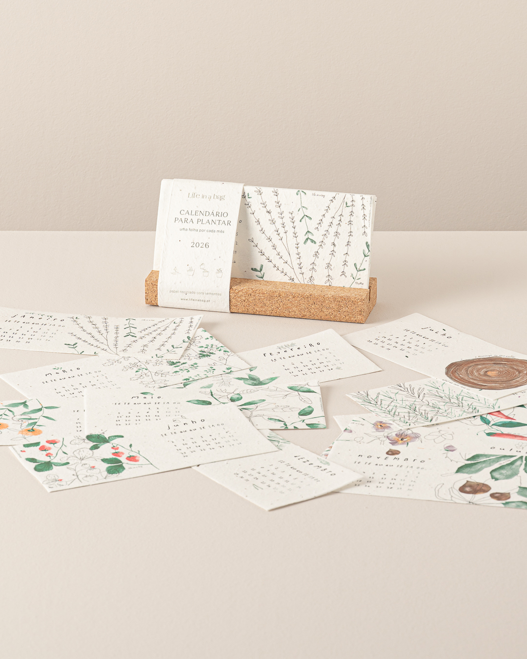 Imprimé sur du papier artisanal 100 % coton avec des graines de fleurs, pour semer une feuille par mois, il suffit de déchirer le papier en petits morceaux, de le mettre dans un pot avec de la terre, d'arroser et de voir grandir votre jardin !